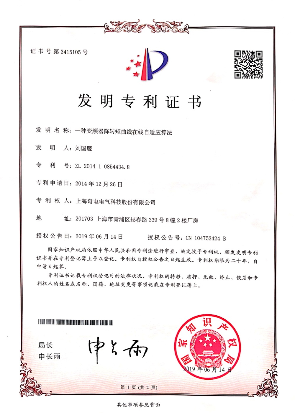 专利证书