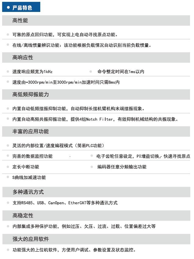 QHE5系列伺服驱动器产品是本公司结合市场需求研制的通用型交流伺服驱动器。该系列产品的功率范围为400~2.2KW,单/三相220V电压等级,具有丰富的通讯接口,可支持光电、旋变等多种编码器,采用先进的控制算法,能实现转矩、转速、位置精确的数字控制。大幅度提升伺服电机尺寸的对应性和产品特性的匹配度,可方便的替换其他品牌。